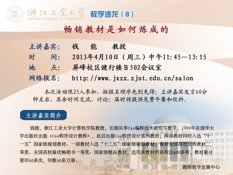 附網絡報名鏈接:http://www.jxzx.zjut.edu.cn/salon