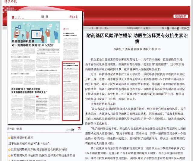4月13日,《科技日報》以《耐藥基因風(fēng)險評估框架 助醫(yī)生選擇更有效抗生素治病》為題,報道我校環(huán)境學(xué)院錢海豐教授團(tuán)隊(duì)多維度評估耐藥基因,判斷耐藥基因風(fēng)險等級,助力醫(yī)生選擇更有效的抗生素治病。